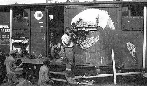 En février, les autorités bolchéviques d'Ukraine accordent à la Légion la permission de se retirer de Russie, au moyen d'un long voyage en train jusqu'à Vladivostok[7] après de longues négociations[8]. Cependant, le 18 février, avant que les Tchécoslovaques n'aient quitté l'Ukraine, les puissances centrales lancent l'opération Faustschlag sur le front oriental pour forcer les bolcheviks à accepter ses conditions de paix. Début mars, la Légion a vaincu une force allemande numériquement supérieure qui tentait de la détruire lors de la bataille de Bakhmatch, livrée au nord-est de Kiev. [7]. Une défaite aurait probablement impliqué une exécution sommaire pour les soldats de la Légion, en tant que traîtres à l'Autriche-Hongrie.