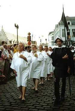 L'attitude de Charles Quint, qui entre dans la ville le , a été l'objet de vifs débats entre historiens. Certains y voient une répression rapide, vengeresse et impitoyable. Il est vrai que la ville fut symboliquement châtiée pour avoir lésé la majesté de l'empereur : une dizaine de meneurs (entre neuf et dix-sept hommes) furent décapités et cinq cents bourgeois durent défiler en habit de pénitents, pieds nus avec une corde au cou, devant l'empereur pour requérir sa grâce. Depuis cette époque, les Gantois sont surnommés «Stroppendragers» (les «garrottés»). La prestigieuse abbaye de Saint Bavon fut nettement affaiblie, son monastère rasé et transféré dans la modeste collégiale Saint-Jean (actuelle cathédrale). Seuls quelques édifices en furent préservés pour être intégrés à la nouvelle citadelle, dont les canons visaient aussi bien l'extérieur que la ville. Les fossés de la ville furent également comblés, tandis que la cloche du beffroi, la "Klokke Roeland", symbole des libertés communales, est descendue.