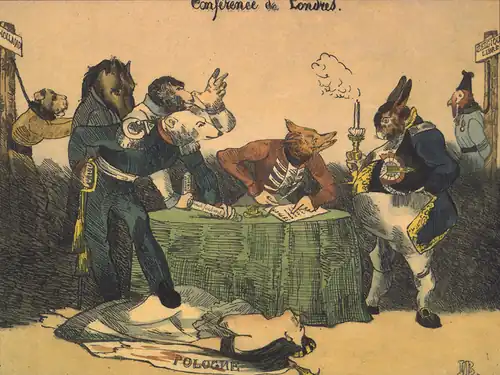 La légende dit : « Troisièmement le mariage. L'Autriche la conduit à l'autel ; Metternich, l'archiprêtre de la Sainte-Alliance la marie ; le sacristain Castlereagh crie « amen » ; le Russe danse à son mariage et John Bull paie les frais. – Fin de l'acte premier. »