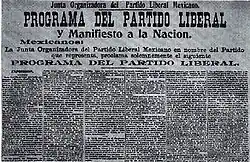 Le , les libéraux fondent le Parti libéral mexicain et, le , publient à Saint-Louis dans le Missouri leur « manifeste-programme »[39].