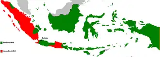 - ↑ (en) Indonesia Law No. 5/1974 Concerning Basic Principles on Administration in the Region [PDF] « Copie archivée » (version du sur Internet Archive), Chapter VII Transitional Provisions, Art. 91., 1974.