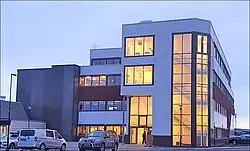 La zone portuaire de Rørvik abrite également l' InnovArena[16] , un bureau commun et un centre de laboratoire pour les activités de recherche et développement.