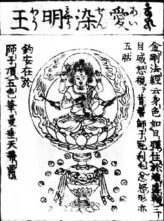 Au Japon, sous le nom de Aizen Myōō (愛染明王), il représente la forme irritée de Maha Vairocana du mandala du vajra, son pendant sur le mandala de la matrice étant Fudo myoo, autre divinité irritée chère au cœur des Japonais.