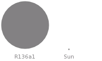 Comparativement au Soleil, R136a1 serait entre 28,8 et 35,4 fois plus grande (diamètre estimé à environ 44 089 600 km contre 1 392 000 km), plusieurs millions de fois plus lumineuse et avec une température à sa photosphère (surface qui produit le rayonnement de l'étoile) dix fois plus élevée (56 000 K contre 5 778 K pour notre étoile).