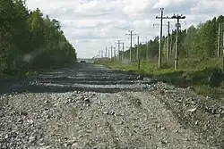 Une section de la route en 2010 avant rénovation.Poutine conduisant sur une section bientôt inaugurée en août 2010 dans l'oblast de l'Amour.