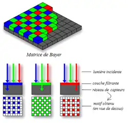 - Divers algorithmes de dématriçage peuvent être utilisés.