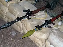 - Al-Nassira : copie du RPG-7 produite sous licence en Irak depuis les années 1980, mais qui se distingue du modèle original par l’absence d’optique, remplacée par une simple mire métallique[4].