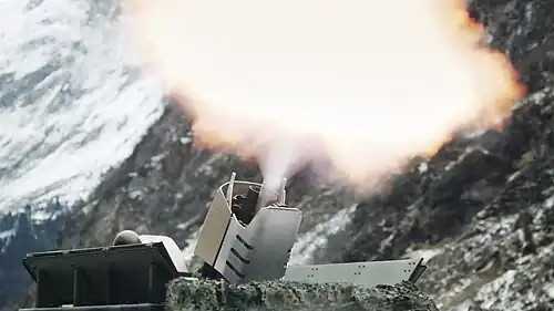 - Après que le lance-mines 64/91 a été retiré du service en 2010, le Ruag Cobra a été inscrit au programme d'armement 2016[4],[5],[6]Le paquet global comprend 32 systèmes de mortier (véhicules porteurs 8 × 8 Mowag Piranha IV et mortiers), l'extension du Système intégré de conduite et de direction des feux de l'artillerie INTAFF pour le mortier 12 cm 16, l'adaptation de 16 chars de commandement 93/99 déjà en service, la logistique, 12 camions protégés (dédiés à la logistique) et 36 conteneurs de ravitaillement en munitions[7]. Le prototype du mortier 12 cm 16 a été en essais à la troupe jusqu'au printemps 2020. La commande pour la production en série auprès de GDELS-Mowag a été passée en février 2021, avec une remise à la troupe dès 2024[7]. 4 batteries pourront être équipées du mortier[8]. Le programme d'armement 2022 inclut une deuxième série de mortiers 12 cm 16. Celui de 2023 inclut la transformation de munitions des lance-mines 12 cm mis hors service pour être utilisées avec le mortier 16 (12cm Mortier 16 obus de lancement 20 MVZ, obus de lancement 25 MOZ, obus éclairant 22 ZZ et obus d’exercice explosif 24 MVZ).