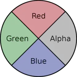 Le codage comprend la valeur des trois composantes de couleur primaire rouge, vert, bleu entre 0 et 1 exprimée soit par un octet (0 à 255), soit en pourcentage. Le canal alpha vaut aussi entre 0 et 1, les programmes doivent ramener à la valeur autorisée la plus proche toute valeur hors limites.