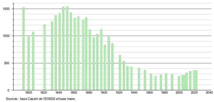 - ↑ Fiches Insee - Populations de référence de la commune pour les années 2006, 2007, 2008, 2009, 2010, 2011, 2012, 2013, 2014, 2015, 2016, 2017, 2018, 2019, 2020, 2021 et 2022.