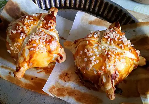Une pomme évidée est posée sur un carré de pâte feuilletée. Dans la cavité centrale, on verse du sucre avec de la cannelle et une noisette de beurre. La pâte est rabattue autour de la pomme, le tout est cuit 30 à 40 min au four[1]. Il est possible de décorer l'ensemble ainsi composé avec des motifs réalisés avec les restes de pâte.
