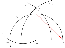 - Tracer le cercle de centre et de rayon , il coupe en deux points, soit l’un d’entre eux ;