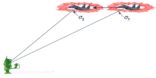 Alors que les différents ne sont pas nuls, la somme des peut être nulle à cause des différences de phases de chaque terme. Le seul paramètre accessible au niveau de la station radar est la fréquence. Afin donc d'améliorer la détection, on utilise un radar avec deux émetteurs calés sur des fréquences différentes.