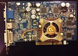 | Nombre1 | Fréquence (MHz) | Puissance (GF/s) | Débit de Textures (GT/s) | Nombre | Fréquence (MHz) | Débit de pixels (GP/s) | Taille (Mio) | Longueur du bus (bit) | Fréquence (MHz) | Bande passante (Gio/s) | Type de bus | OpenGL | DirectX | ||||||