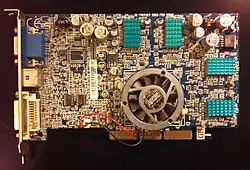| Radeon 9600 | AGP8X | RV350 | 130 | 325 | 4:2:4:4 | 128, 256 | DDR | 400 | 128 | 6.4 | 1300 | 1300 | 1300 | 162.5 | 9.0 | 2.0 | 2003 | |