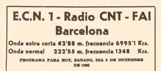 Radio CNT-FAI ECN1 est une station de radio libertaire internationale fondée à Barcelone en par la Confédération nationale du travail et la Fédération anarchiste ibérique.