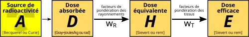 - L'activité d'une source radioactive se mesure en becquerels (Bq), unité correspondant au nombre de désintégrations par seconde, nommée en hommage à Henri Becquerel. On utilise quelquefois (en biologie par exemple) le nombre de désintégrations par minute.
