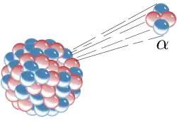La désintégration alpha peut être vue comme une forme de fission nucléaire où le noyau père se scinde en deux noyaux fils dont l'un est un noyau d'hélium :