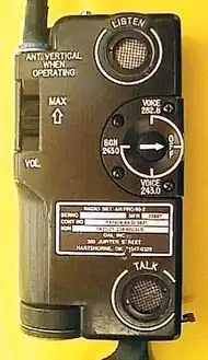 ↑ Balise de sauvetage type AN-URC-68 , type URC-68 année 1965 type aéronautique fréquence: 243 MHz avec 0,2 W en AM et fréquence: 40,5 MHz avec 0,5 W en FM.