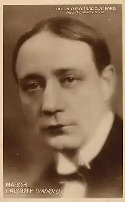 Portrait de Marcel Laporte (Radiolo) dans les années 1930, photographie du Studio Intran. | |