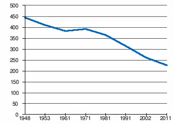 | 444 | 413 | 382 | 391 | 365 | 314 | 261[2] | 227[1] |