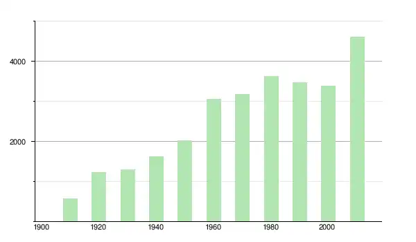 | 1950 | 2 030 | ▲ +24,69 % | |