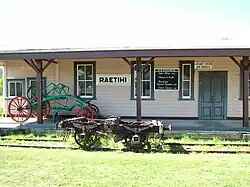 Du au , Raetihi fut desservie par la branche de Raetiti (en), un embranchement ferroviaire du chemin de fer, qui diverge à partir du ligne principale de l’île du Nord (en) au niveau de la ville d’Ohakune. Le bâtiment de la gare reste actuellement visible dans la ville, relocalisé à partir de son site original et restauré dans le cadre d’une partie du musée de Waimarino[6]. Il était initialement situé dans la gare sur Station Road, qui siège à droite du pont sur la rivière Makotuku sur la route d’Ohakune. Le chemin de fer a atteint Raetihi en 1917 et joué un rôle vital dans l’industrie du bois. La ligne fut fermée pour le transport des passagers en 1951 et complètement fermée en 1968 avec le déclin de la filière du bois et des scieries. Le bâtiment de la gare de chemin de fer fut transféré à son site actuel sur Seddon Street en 1981, 7 ans après la formation de la société de gestion du musée. D'autres bâtiments furent déplacés vers le site du musée en 1983 : c’étaient le ‘jail cells’ et les 'stables ‘, tous les deux, initialement situés près de la rivière Makotuku. Le musée possède des documents, des photographies et des objets de la vie de tous les jours, montrant la progression d’une ville à son commencement comme un simple village Māori au XIXe siècleà l’arrivée des scieries et l’exploitation à grande échelle du bois d’œuvre entre les années 1900 et jusqu’en1960 puis le lent déclin de la ville après la fin du boom sur le bois et jusqu’à présent. Le musée possède des documents d’archive et des photographies de tout le large secteur de Ruapehu, dont certaines sont disponibles online[7]. Comme c’est le cas, partout à travers la Nouvelle-Zélande, le musée est tenu par des volontaires et est ouvert mais payant pour les visites, essentiellement les week-ends. Un certain nombre de photographies d’archives et de documents sont disponibles plus largement sur le site web du musée.