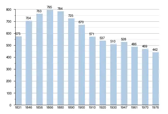 Sources: INS, Rem.: 1831 jusqu'en 1970 = recensements, 1976 = nombre d'habitants au 31 décembre.
