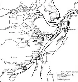 Carte des raids Wakõ dans le Delta du Yangzi Jiang et la province du Zhejiang