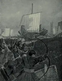 Le 15 avril 1548, la flotte de Zhu Wan stationnée à Wenzhou fait voile vers Shuangyu sous le commandement de Lu Tang et Ke Qiao (柯喬)[35]. La flotte arrive sans être repérée à Shuangyu une nuit de juin, en profitant du mauvais temps. de Cinquante-cinq à quelques centaines de contrebandiers périssent lors de l'attaque, mais les principaux chefs, comme Li Guangtou et Wang Zhi, réussissent à s'échapper. Lu Tang rase ensuite la ville et rend le port définitivement inutilisable en le remplissant de pierres, en application des ordres qu'il avais reçu de Zhu Wan[36].