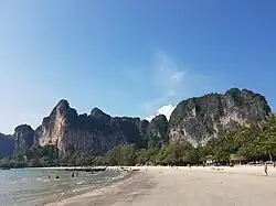 Ces falaises et karsts calcaires en font un site d'escalade mondialement connu. Elle est également réputée pour ses plages, dont celle de Phra nang, souvent considérée comme une des plus belles du monde.