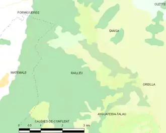 - ↑ « Orthodromie entre Railleu et Formiguères », sur fr.distance.to (consulté le ).