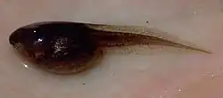 Les œufs sont bruns, entourés d'une gelée claire et font de 1,1 à 1,4 millimètre de diamètre. Les têtards changent d'apparence tout au long de leur développement. Leur longueur varie de 8,1 millimètres (à la naissance) à 44 millimètres. Au départ, ils sont tachetés de brun et augmentent leur pigmentation (verte ou brune) au cours de leur développement. Le ventre est de couleur foncée au départ puis s'éclaircit pour finalement devenir blanc chez les adultes[4].