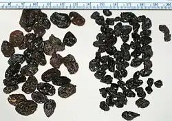 Le raisin de Corinthe (Vitis vinifera apyrena[1]) est un raisin sec. Son nom vient de la ville de Corinthe, en Grèce. Il est aussi appelé raisin de Zante, surtout en anglais, du nom d'une île grecque faisant partie des îles Ioniennes, à l'ouest du Péloponnèse, où on en produit.