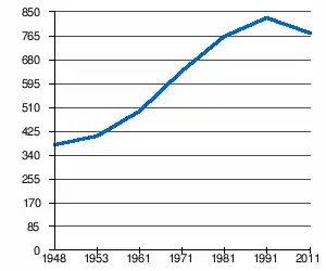- 1 2 (sq) « Évolution de la population 1948-2011 », sur pop-stat.mashke.org (consulté le ).