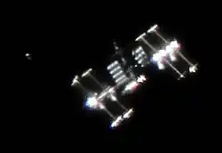 - ↑ (en) Nancy Atkinson, « Ralf Vandebergh's detail of an image he took on March 21, 2009 showing astronauts working outside the ISS », Universe Today,