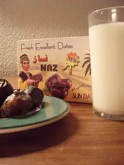 Les dattes et de l’eau sont également utilisées pour rompre le jeûne à l’heure de l’iftar. | |