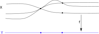 En termes géométriques, la ramification qui se produit en codimension deux (comme la théorie des nœuds et la monodromie); puisque la codimension deux réelle est la codimension un complexe, l'exemple local complexe place le modèle pour les variétés complexes de dimensions plus élevées. En analyse complexe, les feuilles ne peuvent pas se plier le long d'une droite (une variable) ou un sous-espace de codimension un dans le cas général. L'ensemble de ramification (lieu de la branche sur la base, double point placé ci-dessus) seront de deux dimensions plus basses que la variété ambiante, et donc ne se séparera pas en deux 'côtés', localement - il y aura des chemins qui traceront autour du lieu de la branche, juste comme dans l'exemple. En géométrie algébrique sur n'importe quel corps commutatif, par analogie, elle apparaît aussi en codimension algébrique un.