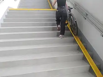 - (en) Cet article est partiellement ou en totalité issu de l’article de Wikipédia en anglais intitulé « Bicycle stairway » (voir la liste des auteurs).
