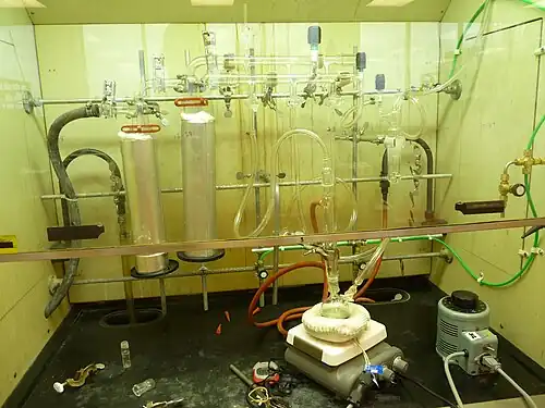 - ↑ Borys, « An Illustrated Guide to Schlenk Line Techniques », Organometallics, vol. 42, no 3, , p. 182–196 (DOI 10.1021/acs.organomet.2c00535, S2CID 256409354)