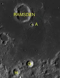 Par convention, les cratères satellites sont identifiés sur les cartes lunaires en plaçant la lettre sur le côté du point central du cratère qui est le plus proche de Ramsden.