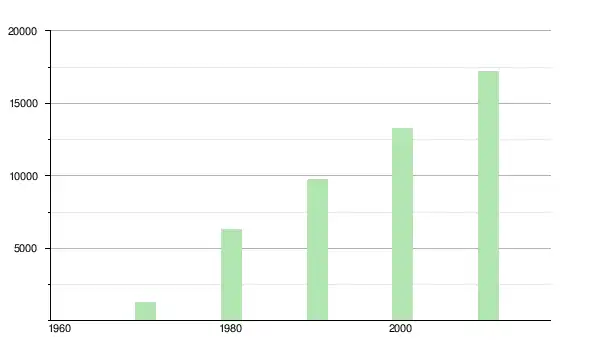 | 1980 | 6 281 | ▲ +383,9 % | |