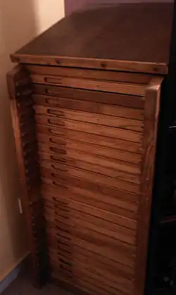 Le typographe travaille généralement debout, mais certains rangs peuvent être munis d’un siège mobile.
