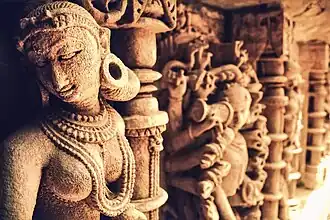 Il comporte sept niveaux d'escaliers comprenant plus de 1500 sculptures sur des registres religieux, mythologiques et laïcs, souvent en lien avec des œuvres littéraires[2],[1]. Le dieu Vishnou est le plus représenté, ainsi que ses avatars, Krishna, Rama, etc.