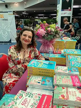 Après une dizaine d'ouvrages édités, liés à la créativité et au développement personnel, elle publie, en , son premier roman : Ta deuxième vie commence quand tu comprends que tu n’en as qu’une, aux éditions Eyrolles[5].