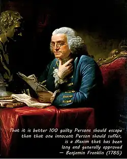 - ↑ (en) « it is better 100 guilty Persons should escape than that one innocent Person should suffer »