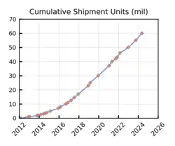 À la fin de 2019, le total des ventes atteint 30 millions d'unités[64].