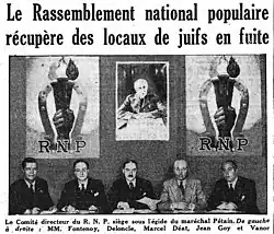 Le Rassemblement national populaire (RNP) est un parti politique français fasciste et collaborationniste, fondé par Marcel Déat pendant l'occupation allemande. Le RNP, qui a existé du jusqu'en 1944, avait une origine néo-socialiste et embrassait le projet d'Europe nazie unifiée[3]. Il se destinait ainsi à « protéger la race ».