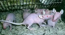 Les rats sont sensibles à certains parasites, dont certains sont transmissibles à l'homme[33] comme la gale sarcoptique, la gale notoedrique, les puces, les poux du rat, la teigne et les vers intestinaux. De manière générale, certains de ces parasites sont transmis par d'autres animaux, et certains ne se développent que dans de mauvaises conditions d'élevage, dans les animaleries notamment. La gale notoedrique est le parasitisme le plus fréquent chez le rat d'élevage[b 7],[34].