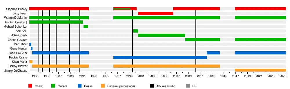 - Stephen Pearcy – chant (1976–1992, 1996–2000, 2006–2014, depuis 2016)
